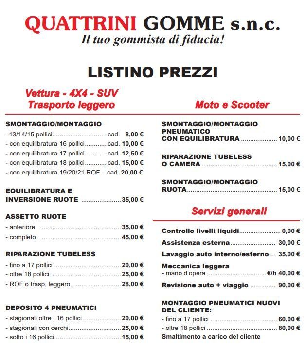 Il gommista Quattrini Gomme si occupa non solo di servizio di vendita e riparazione gomme, ma anche di: